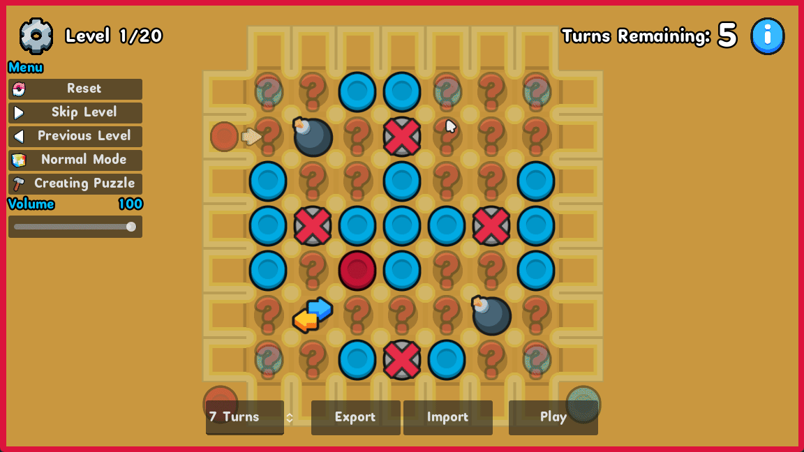 Puzzle Mode is a Solo experience where you will puzzle through 20 levels of increasing difficulty, your goal is to achieve connect 4 with Red tokens while avoiding it with Blue with a limited number of turns.